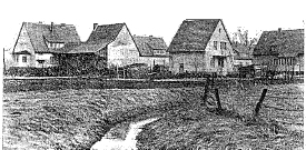 Der Besucher von Hiddestorf, der im Ort in die Straße nach Ihme-Roloven abbiegt, sieht auf der Seite des Sportplatz- geländes und des Sportheims die neuen Häuser, die hier im letzten Jahr entstanden. Auf der anderen Seite der Straße fällt ihm vor allem die neue Siedlung auf, in der immer noch gebaut wird. Wie gut sich auch diese Bauten in die Land- schaft einfügen, wird aber erst in rechtem Maße ersichtlich, wenn man die Neubauten nicht von der Straße, sondern vom dahinterliegenden Gelände aus betrachtet.