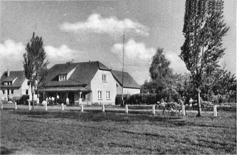 Das alte Sporthaus 1952 - im Hintergrund befinden sich noch keine Häuser auf der langen Wiese