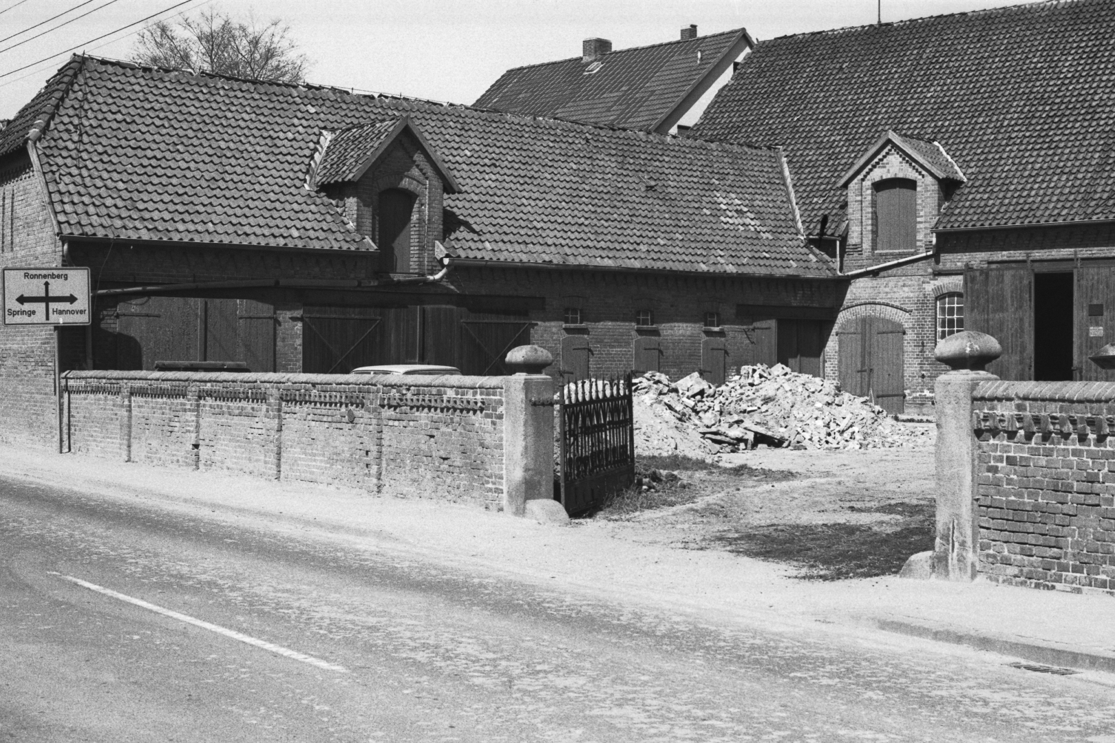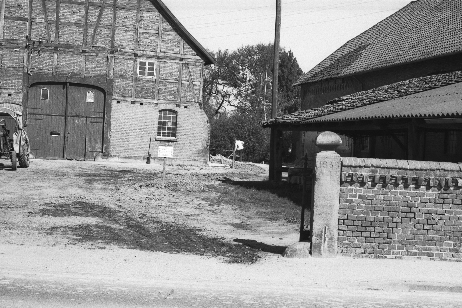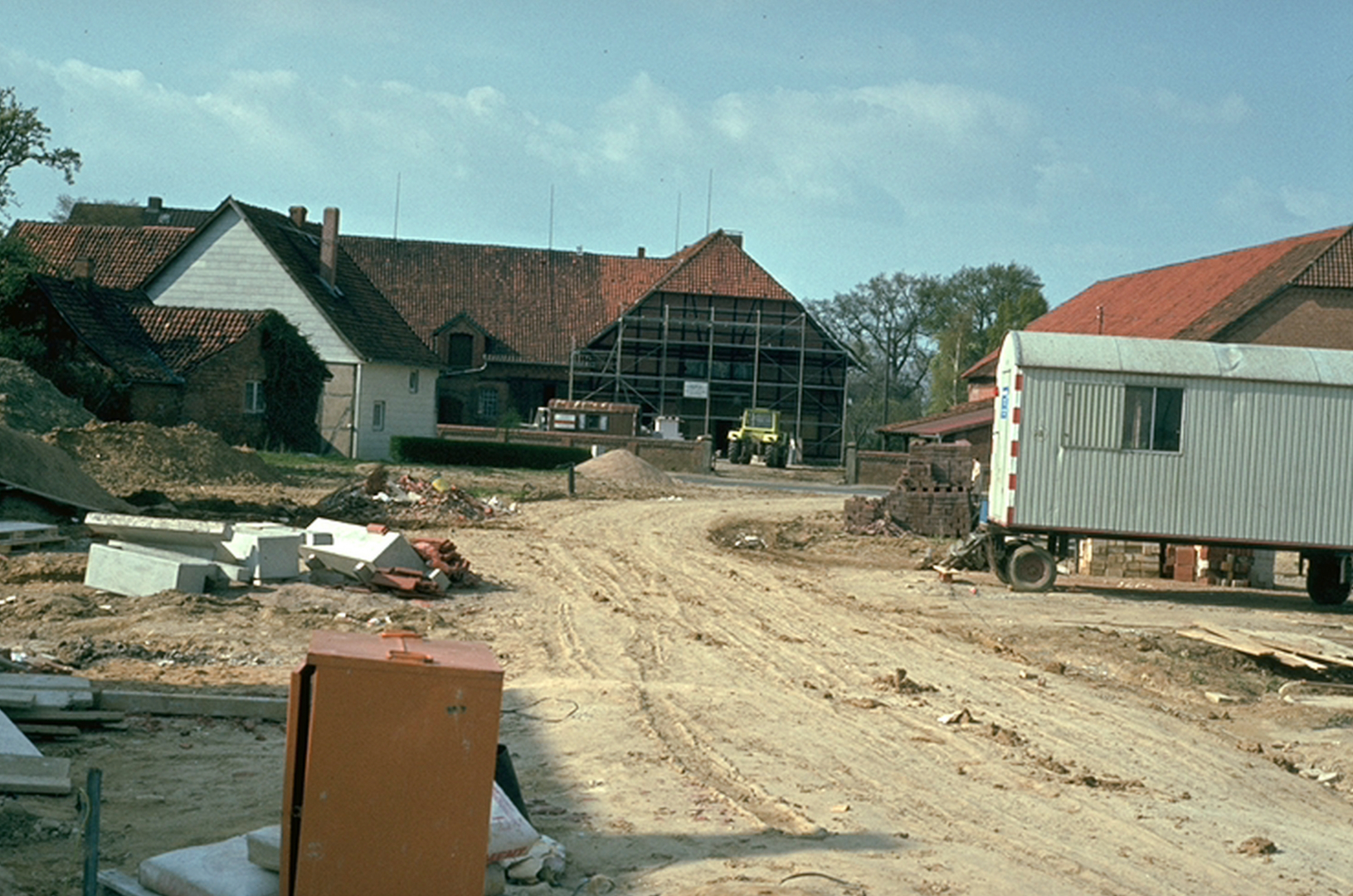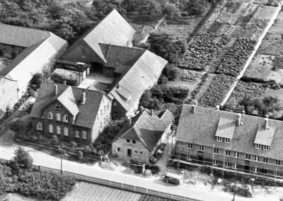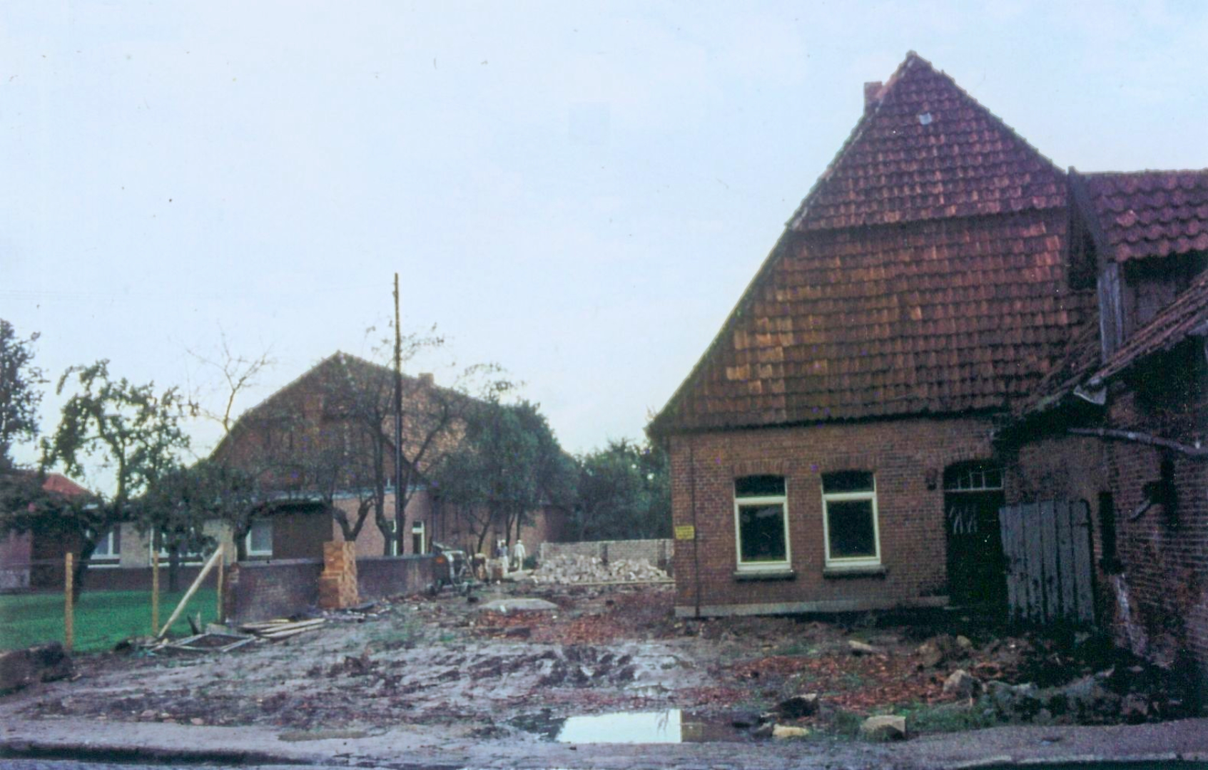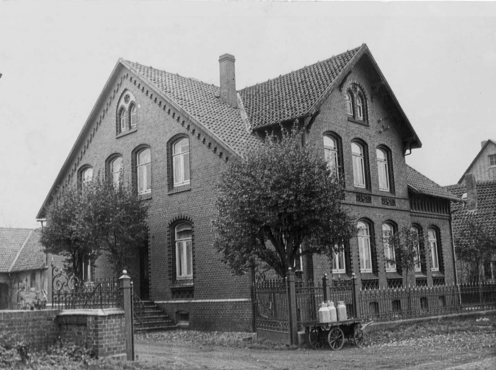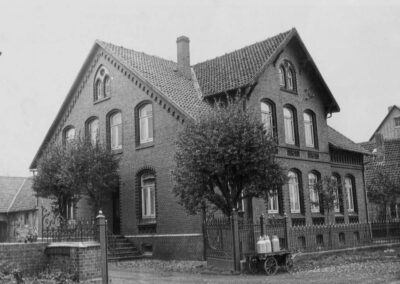 Hof Pape Nr. 36 und rechts das im Bau befindliche Molkereihaus Nr. 32