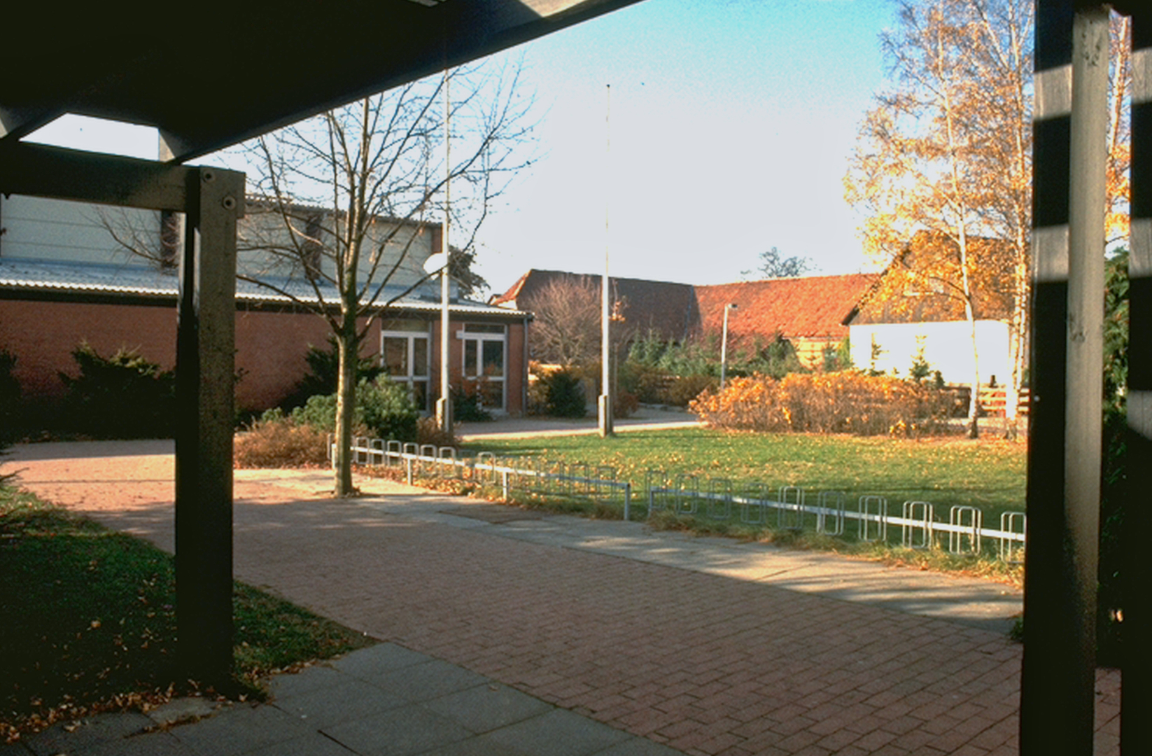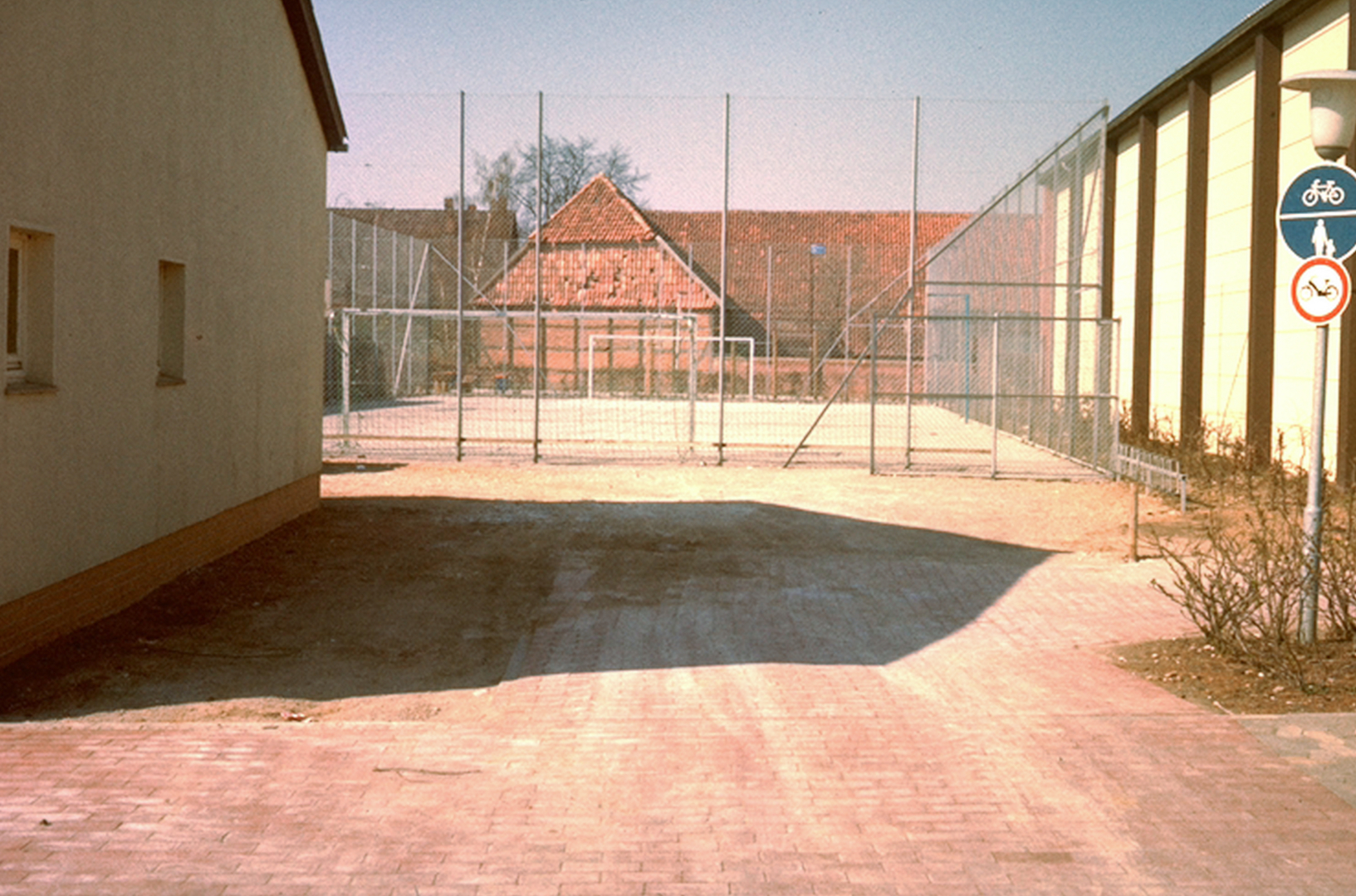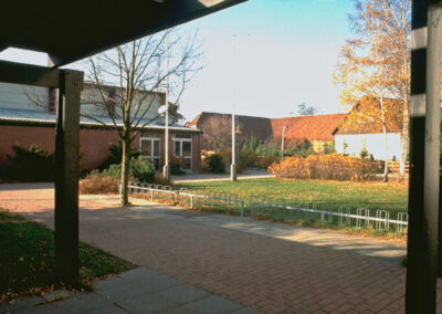Im Hintergrund der Kindergarten