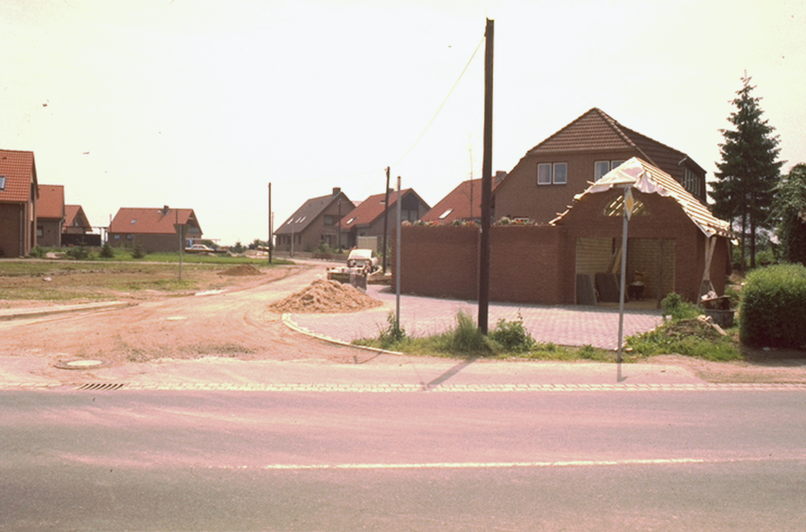 Bau des Feuerwehr Gerätehauses, im Hintergrund der Spielplatz