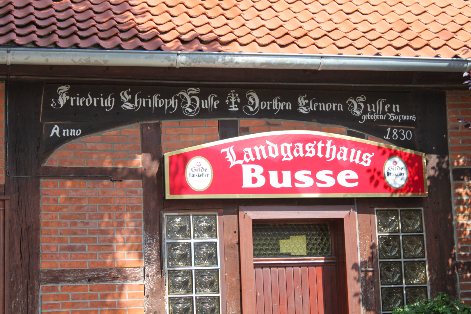 Über der Tür steht geschrieben: > Friedrich Christoph Busse und Dorthen Lenora Bussen gebohrne Karmans 1830 <