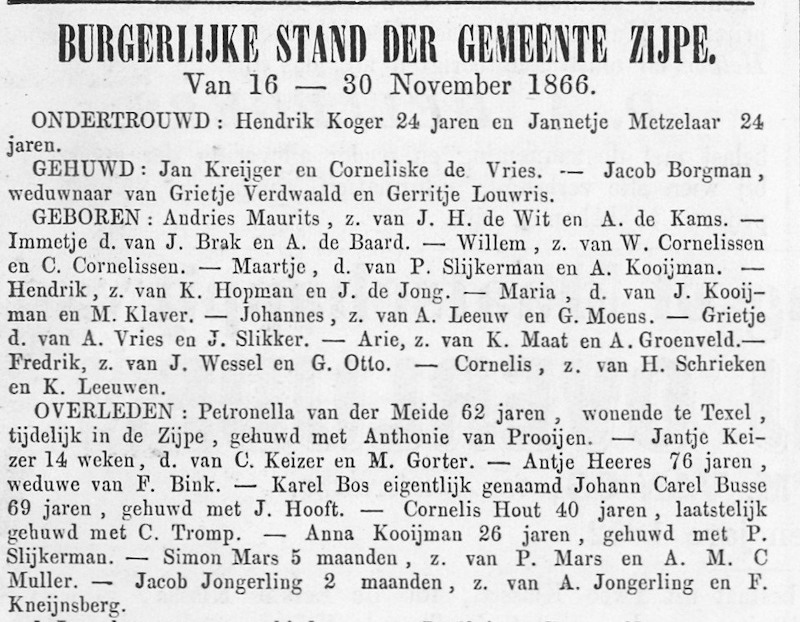 Im Familienblatt der Gemeinde Zijpe kann man lesen: