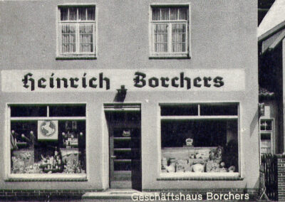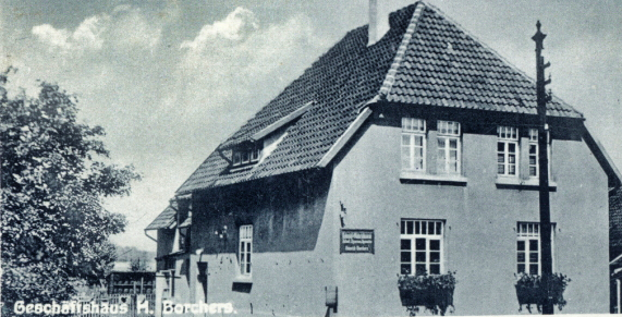1924 wurde das Wohnhaus auf der Masch erbaut. Im Dezember 1931 gründete Heinrich Borchers das “Geschäftshaus Borchers”. Die Einrichtung hat der Tischler Heinrich Borchers selbst gebaut. Sein Bruder Friedrich Borchers, ebenfalls Tischler, führte die Tischlerei in der “Ostertorstrasse”. Friedrich Borchers erstellte im Rahmen der Kirchenrenovierung 1974 aus den beiden noch vorhandenen geschnitzten Bankwagen (linker Teil von 1639, rechter Teil von 1934) die jetzige Kanzel.