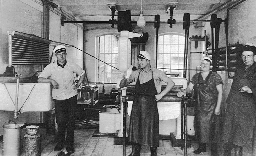 Belegschaft von 1936 (v.r.) Herr Voges, Frau Frieda Wissel