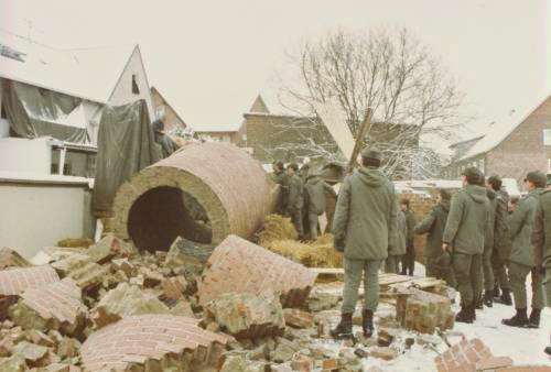 1987 wurde der Schornstein der Molkerei Hiddestorf durch ein Kommando der Bundeswehr gesprengt.