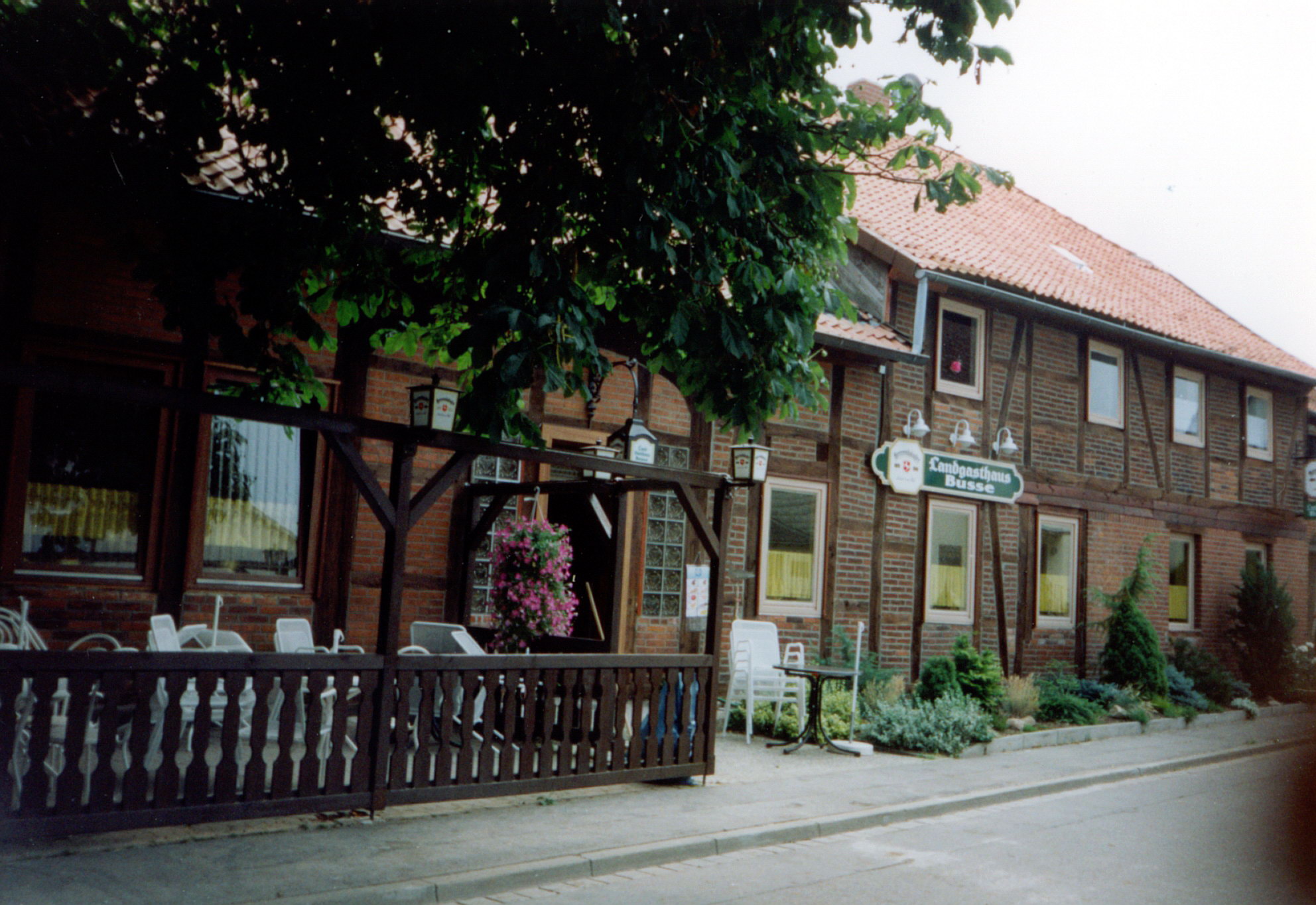 Dieses Gasthaus blickt auf eine über 200-jährige Geschichte zurück. Es war das Vereinslokal des Männergesangvereins Concordia Hiddestorf. 1958 wurde die Fassade des Fachwerkbaus umgebaut. Von 1921 bis 1966 führte das Gasthaus Frau Auguste Busse. Man nannte sie auch liebevoll “Bussenmutter”. Viele Geschichten gibt es von “Bussenmutter” zu erzählen. Berühmt war ihr Brot mit Schinken und Spiegelei fast zum Selbstkostenpreis.