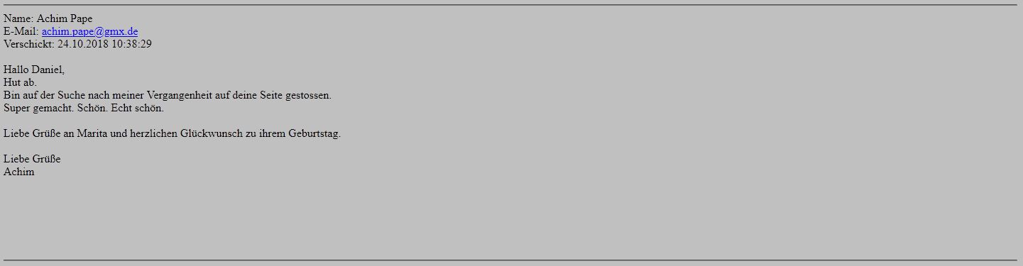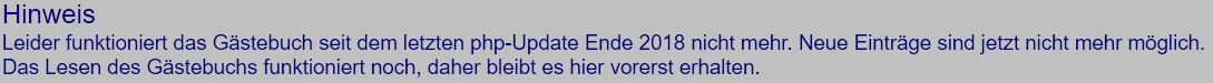 Archiv Archiv - Das alte Gästebuch bis 2018 Leider konnte das Gästebuch nicht in die neue Welt migriert werden. Daher finden sie hier die alten Einträge bis Ende 2018 als Bild wieder.