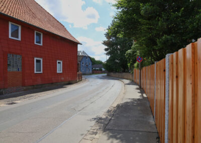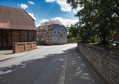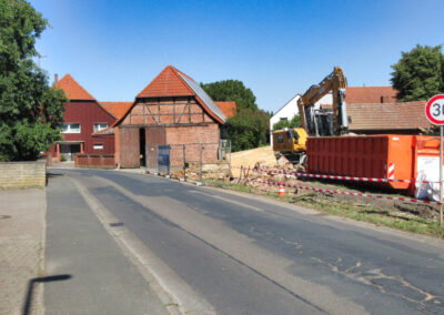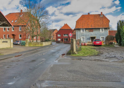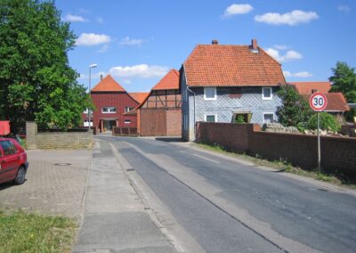 Links das Haus der Familie Felkse, in der Mitte das Haus der Familie Lieke und rechts der Familie Baxmann